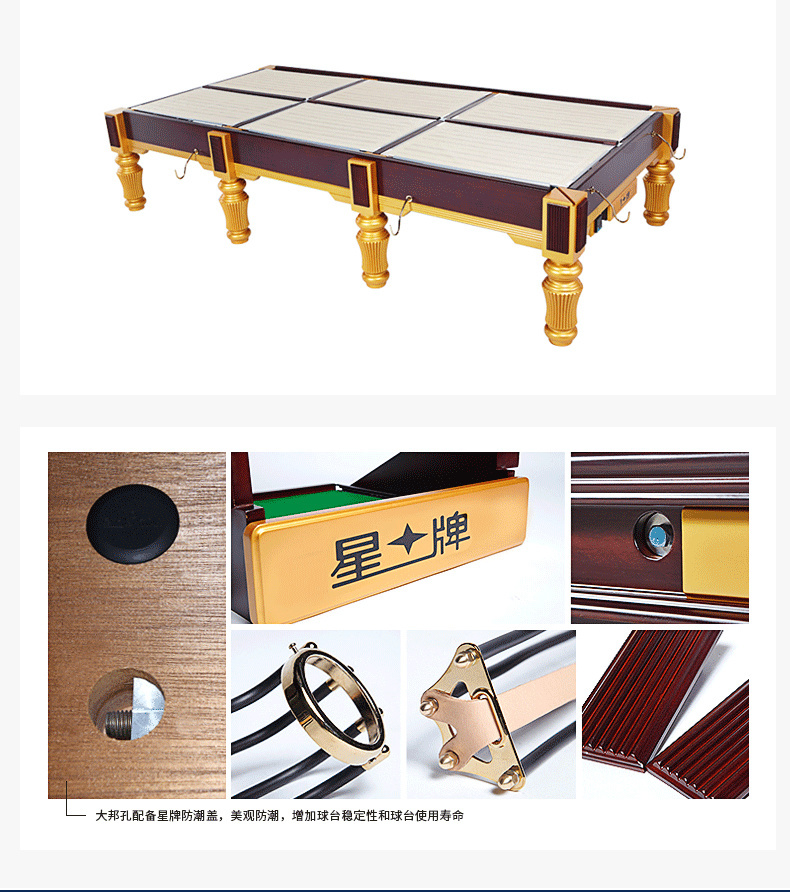 星牌中式台球桌XW119-9A 标准高配比赛级钢库家用球台